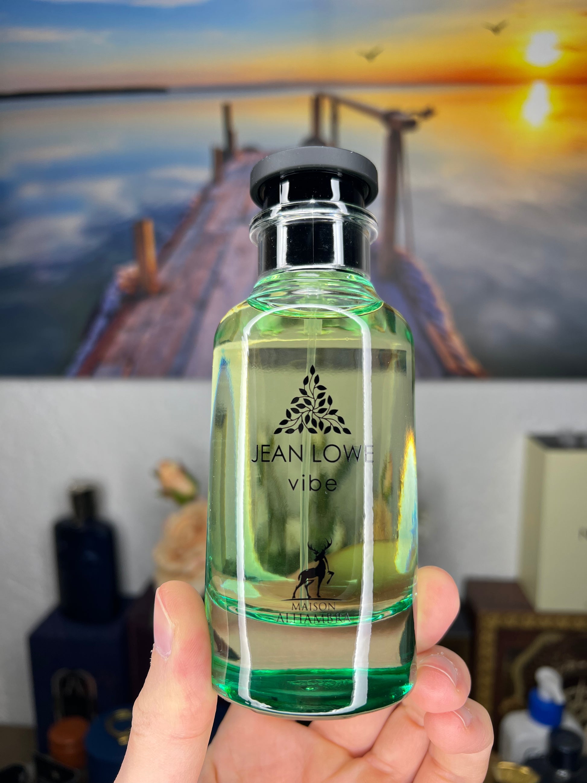 Jean Lowe Vibe nga Maison Alhambra është një aromë unisex me aromë druri që ofron një ekuilibër të butësisë së freskët dhe thellësisë së ngrohtë. Hapet me një notë të sipërme të shkëlqyeshme agrumesh dhe mente, zhvillohet në një zemër lulesh-frutash me nota trëndafili të majit dhe kajsie, dhe përfundon me një bazë të ëmbël, muskulore-drunore fiku, hurme dhe ambrete.